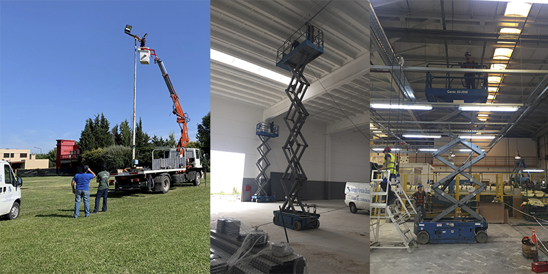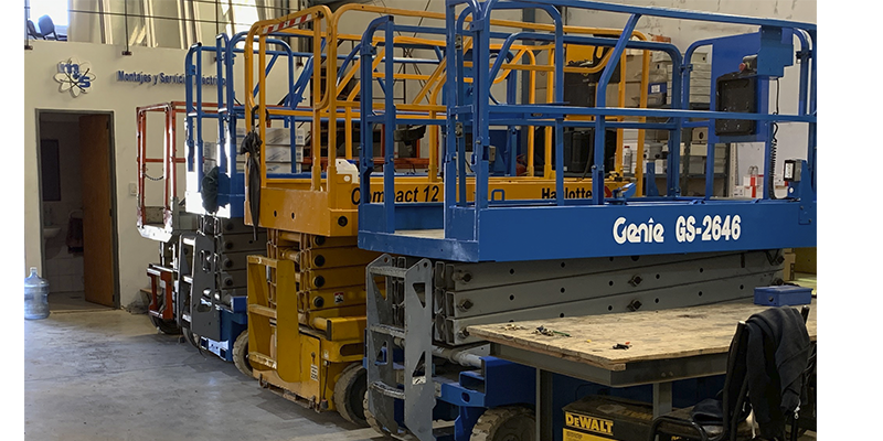 Contamos con plataformas tijera autopropulsada a baterías de 8-10 y 12 metros de altura, equipos autónomos marca Genie, JLG y Haulotte. Hidrogrua de 13 metros y 16 tms de alcance equipada con barquilla dieléctrica.